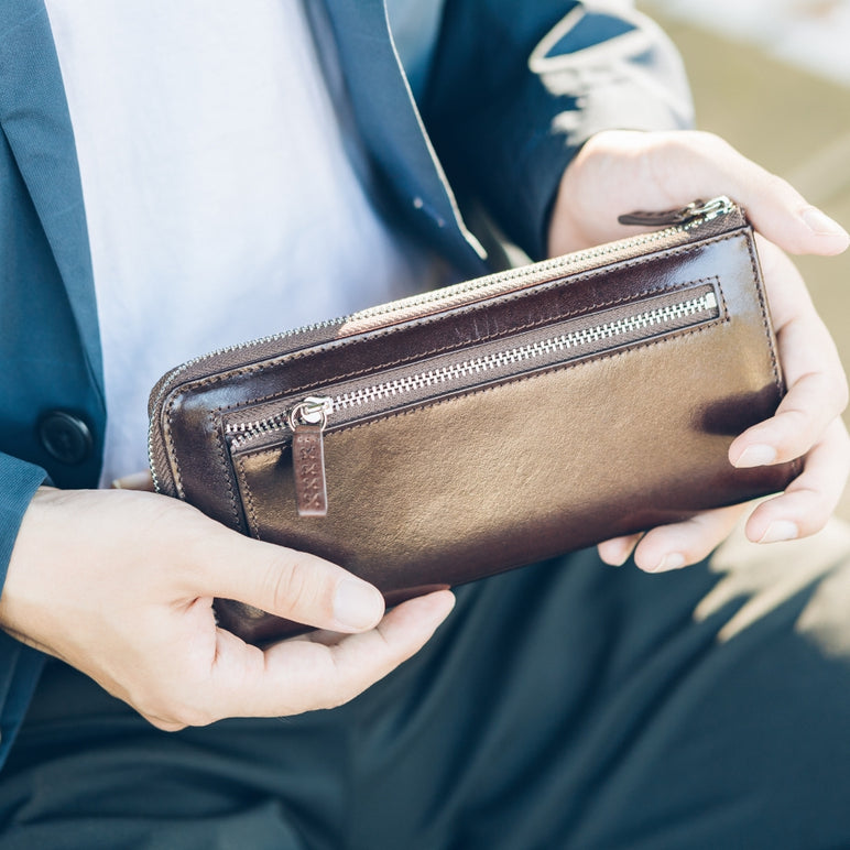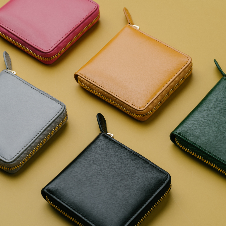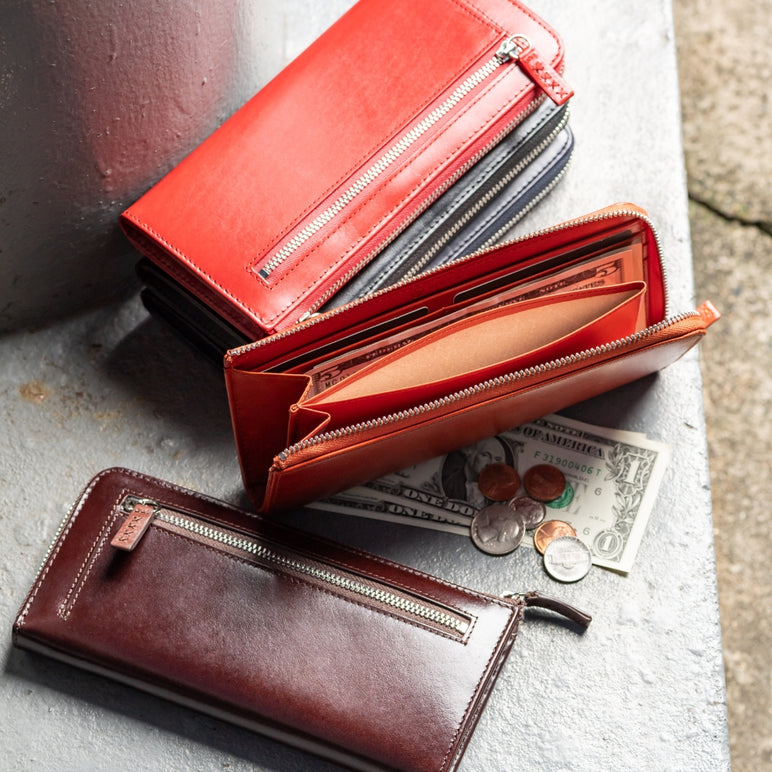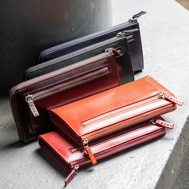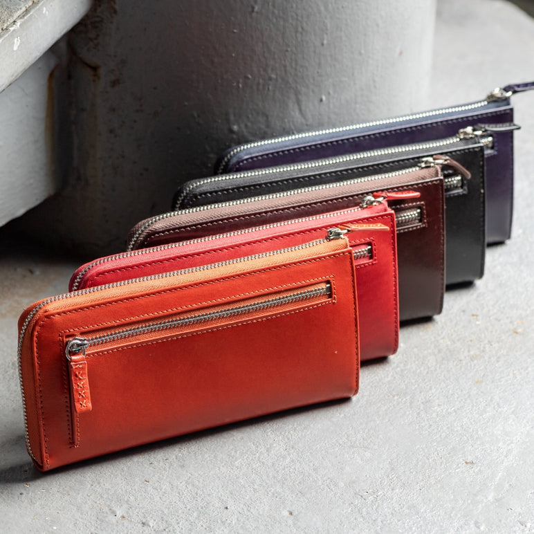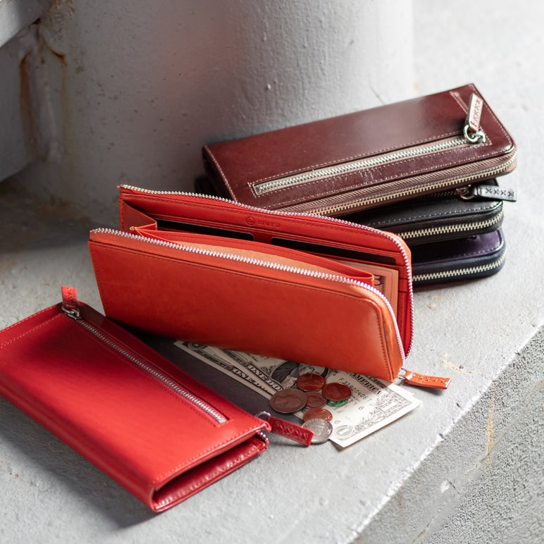 当店人気商品、「L字ファスナー 本革長財布」や、「イタリアンレザー二つ折り財布」「薄型本革長財布」など、数多く紹介。