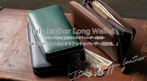 イタリア製ナッパレザーを使用した「カードも守るスキミング防止機能付き長財布」です。