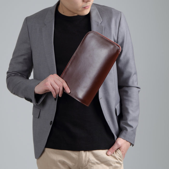 コードバン調/カーボン レザー L字ファスナー コンパクト クラッチバッグ