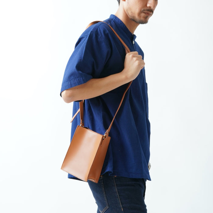 シュリンクレザー 薄マチA5縦型 マグネットボタン付き サコッシュ