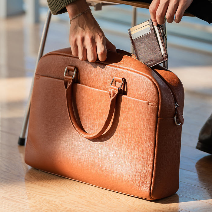 薄型 ダブルジッパー シュリンクレザー ビジネス ブリーフケース