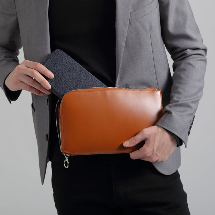 コードバン調/カーボン レザー L字ファスナー コンパクト クラッチバッグ