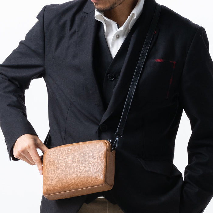 本革/フルグレインレザー スキミング防止機能付き サコッシュ ショルダーバッグ