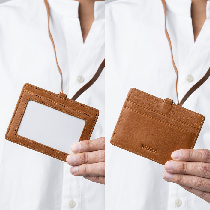 牛本革 ネックストラップ付 伸縮リール IDカードケース
