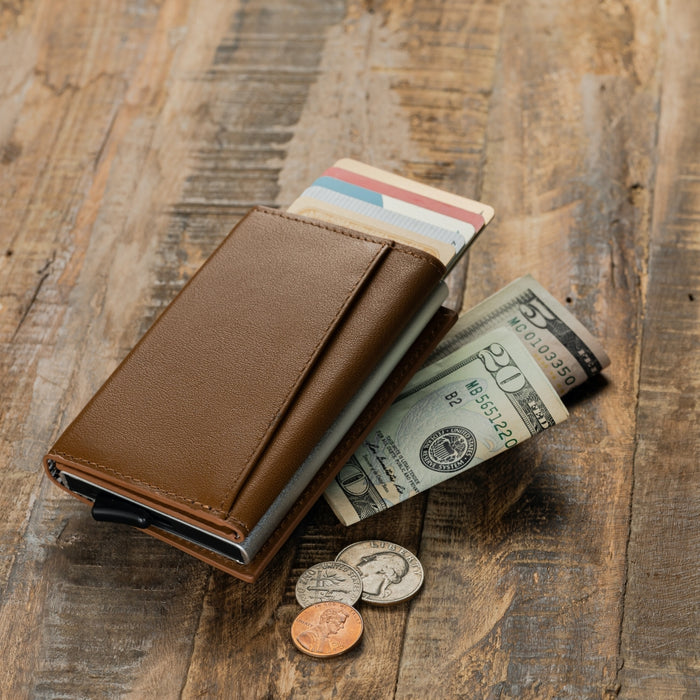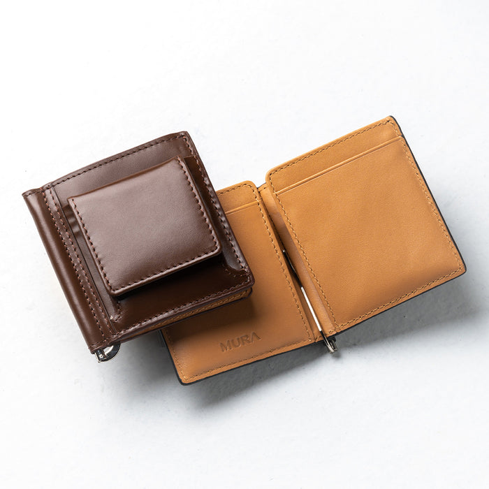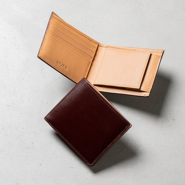小銭入れ付き コードバン調 牛本革 二つ折りマネークリップ