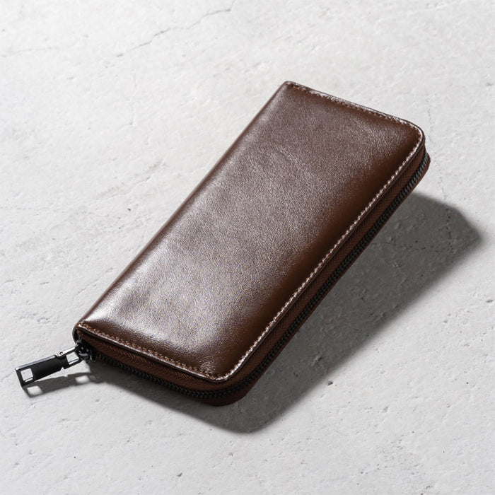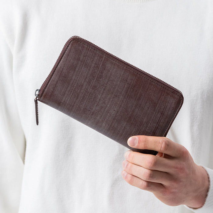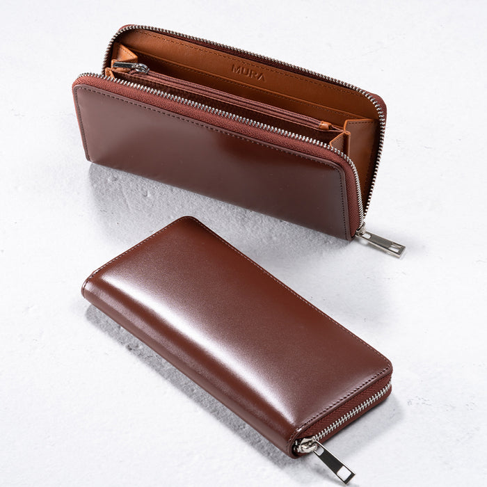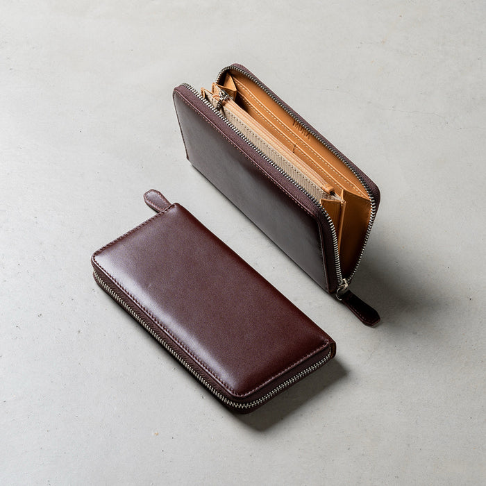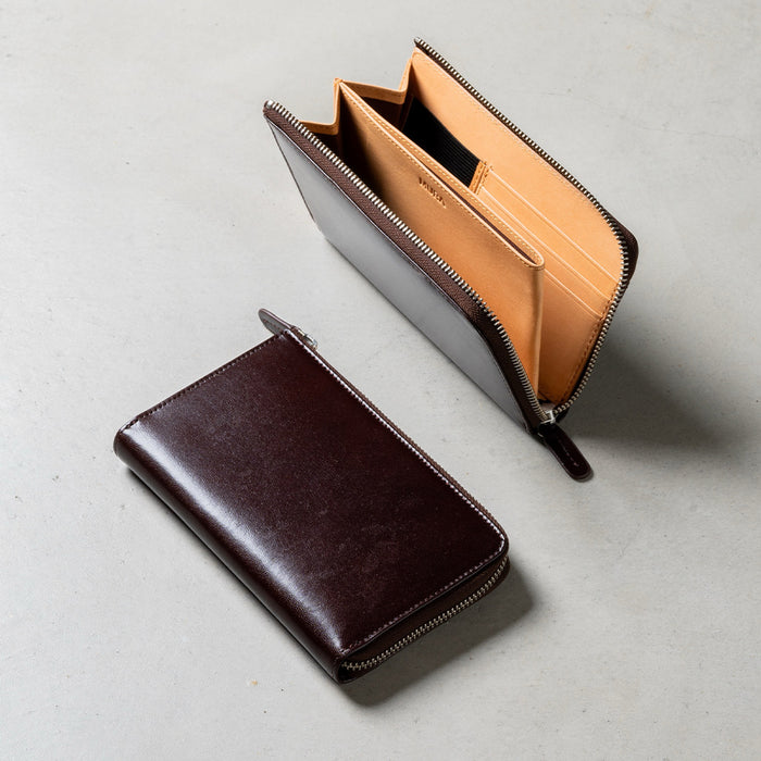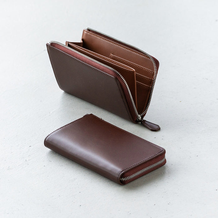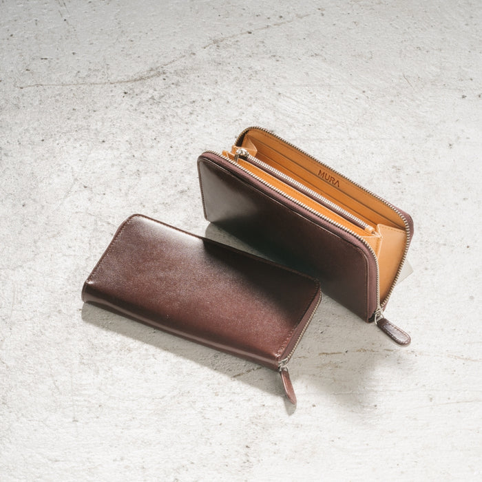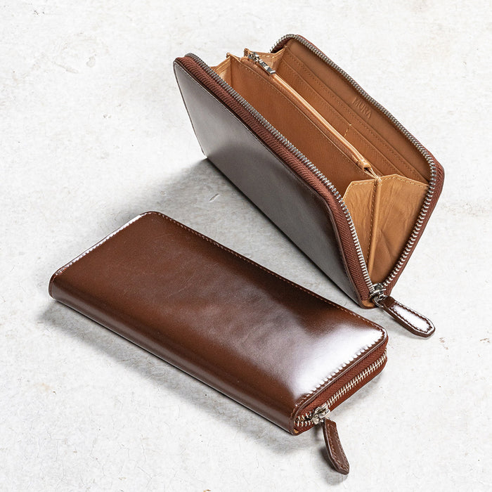 コードバン調 牛本革 フルグレイン スムースレザー YKKラウンドファスナー 長財布