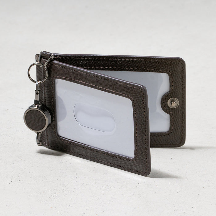 サフィアーノレザー 薄型 伸縮リール付 バタフライ式IDカードケース