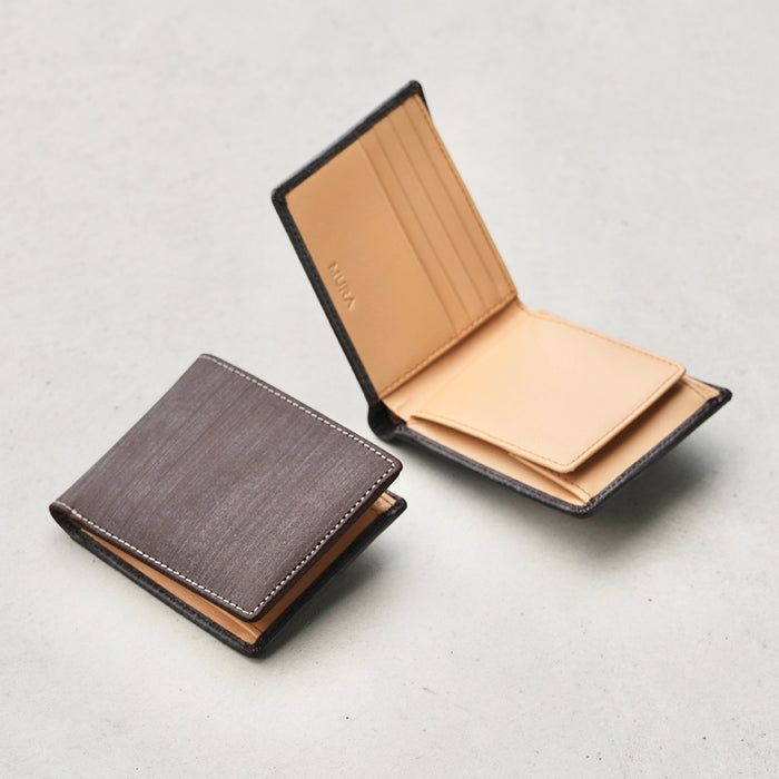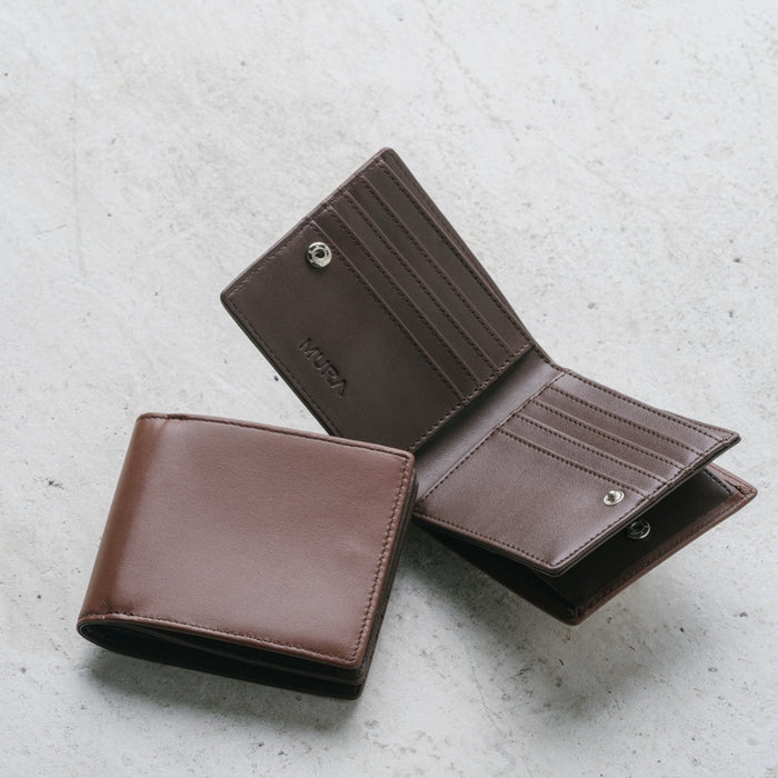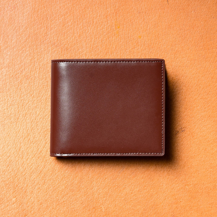 コードバン調 牛本革 フルグレイン スムースレザー ボックス型コイン収納 二つ折り財布
