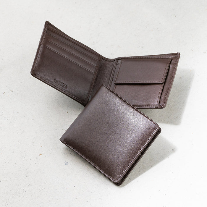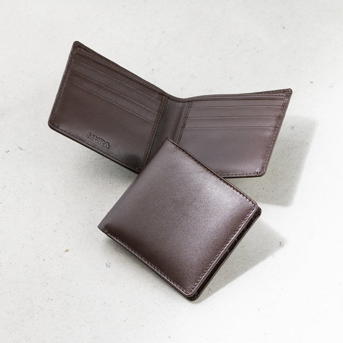 本革 ゴートレザー 隠しポケット付 スリム 二つ折り財布
