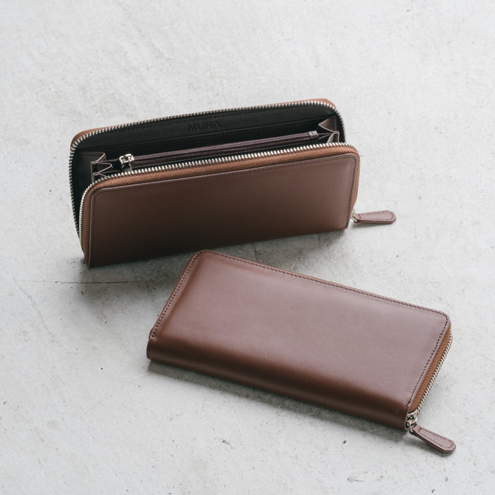 牛革 スキミング防止機能付き YKKラウンドファスナー 長財布