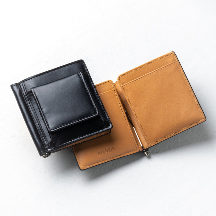 小銭入れ付き コードバン調 牛本革 二つ折りマネークリップ