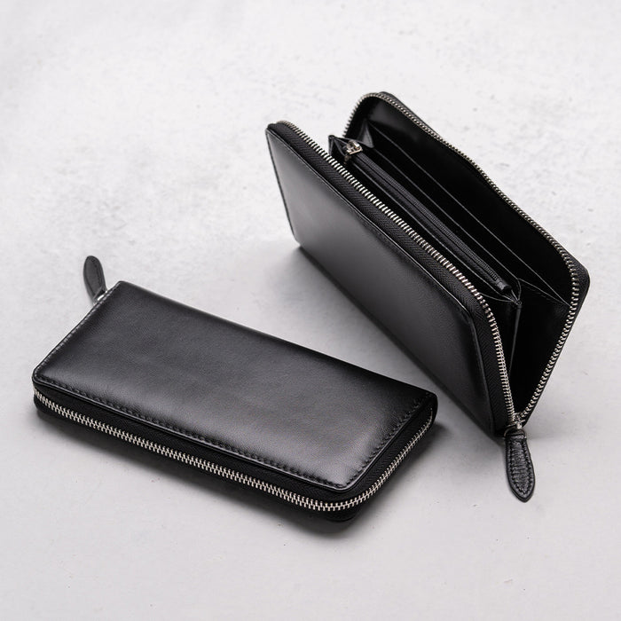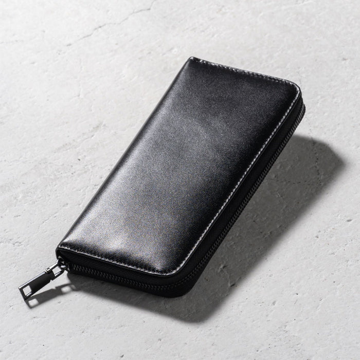 ラウンドファスナー ゴートレザー スキミング防止機能付き 長財布
