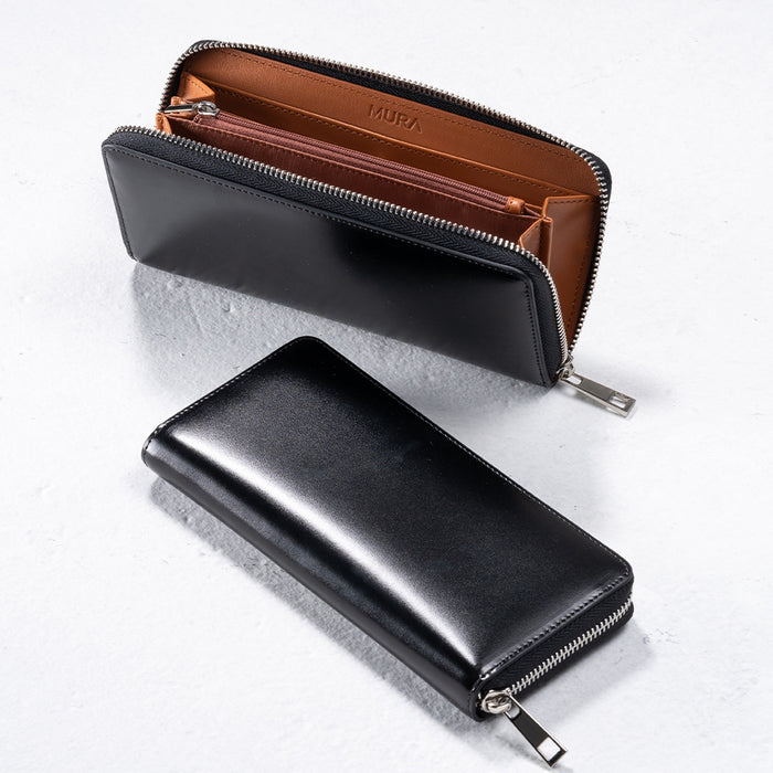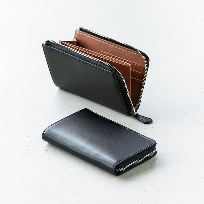 ラウンドファスナー コードバン調/カーボン レザー 長財布