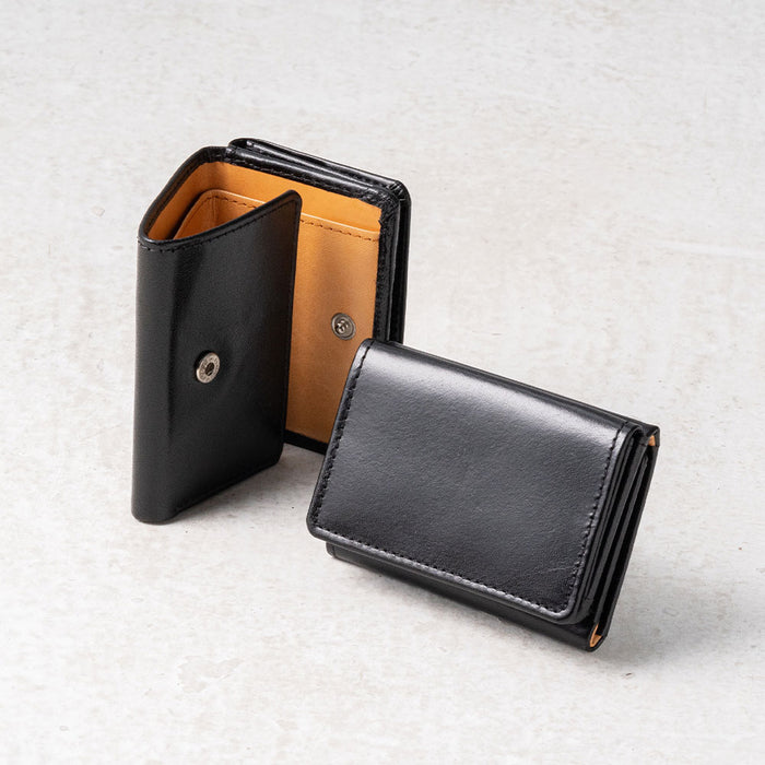 RFIDスキミング防止 コードバン調牛本革 三つ折り ミニ財布