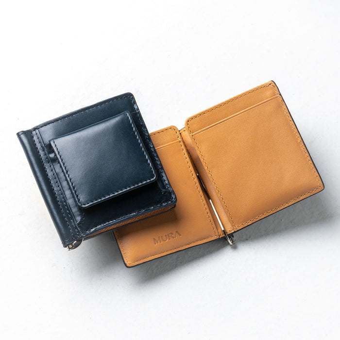 小銭入れ付き コードバン調 牛本革 二つ折りマネークリップ
