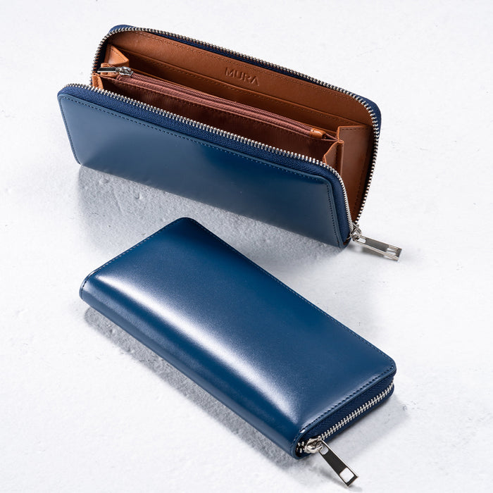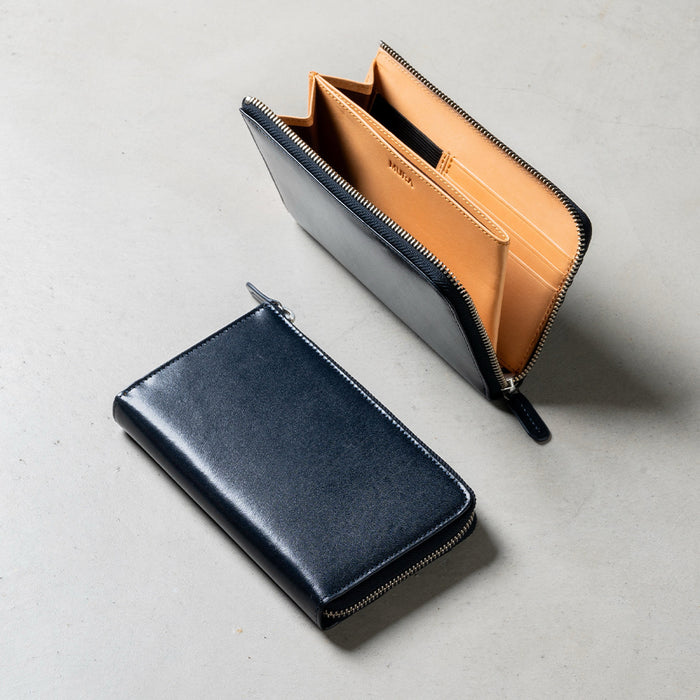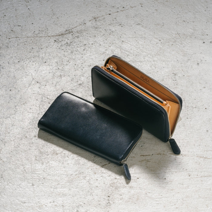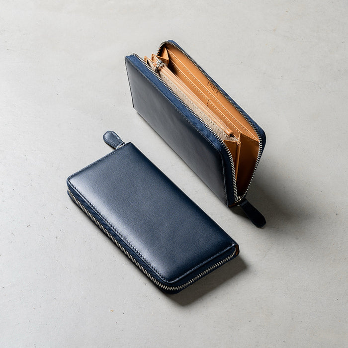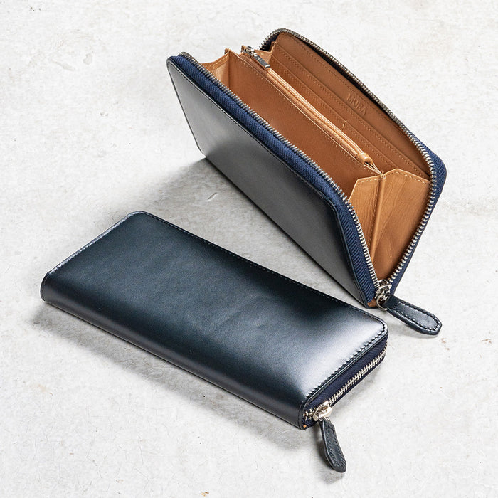 コードバン調 牛本革 フルグレイン スムースレザー YKKラウンドファスナー 長財布