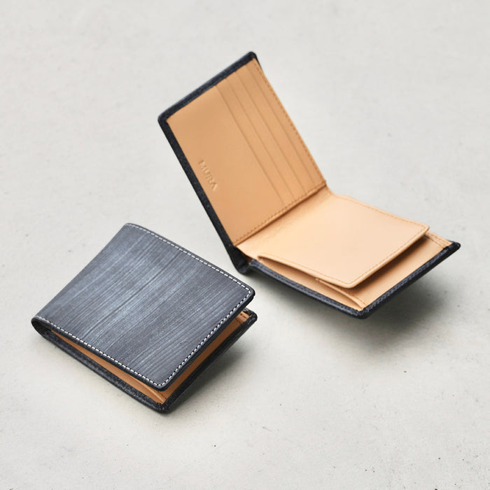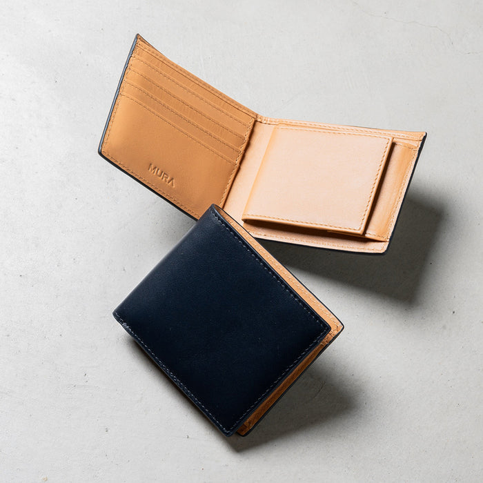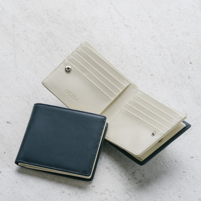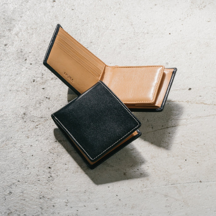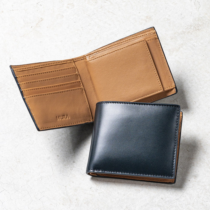 コードバン調 牛本革 フルグレイン スムースレザー ボックス型コイン収納 二つ折り財布