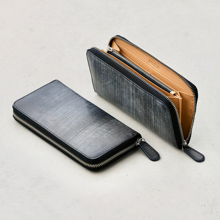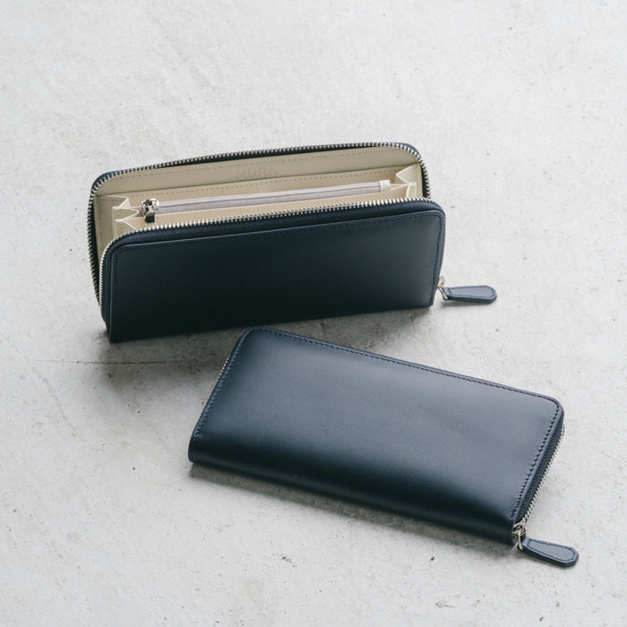 牛革 スキミング防止機能付き YKKラウンドファスナー 長財布