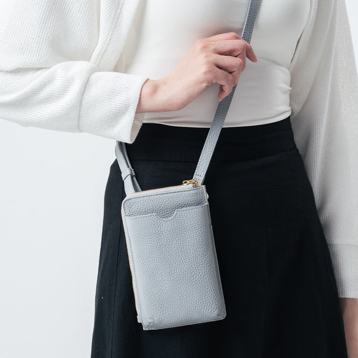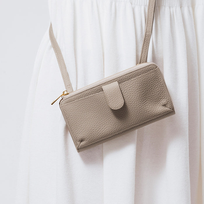 フルグレイン シュリンクレザー L字ファスナー財布付き スマホショルダー