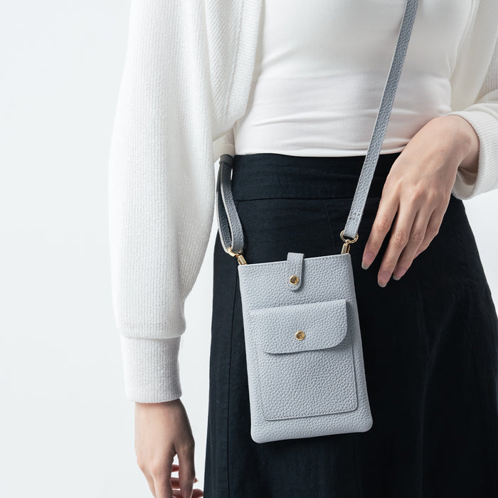 フルグレイン シュリンクレザー スナップボタン スマホショルダーバッグ