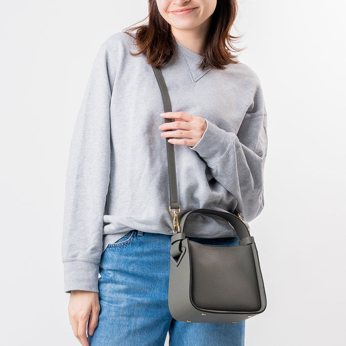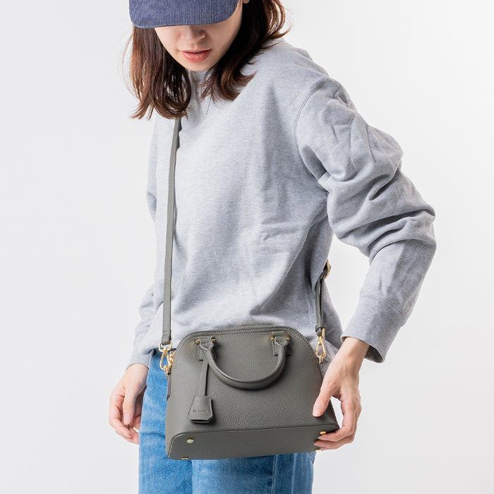 シュリンクレザー ショルダーベルト付き ダブルファスナー ミニハンドバッグ