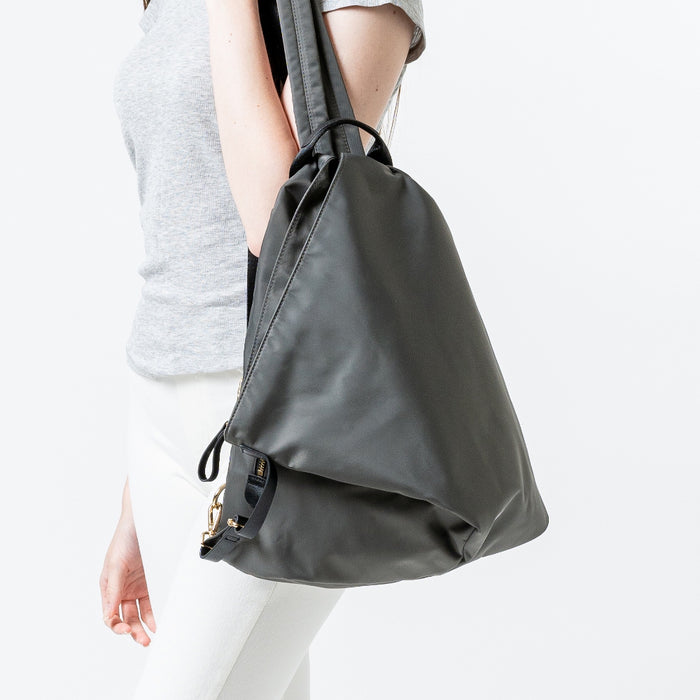 撥水ナイロン 本革ファスナー付 大人の三角リュック