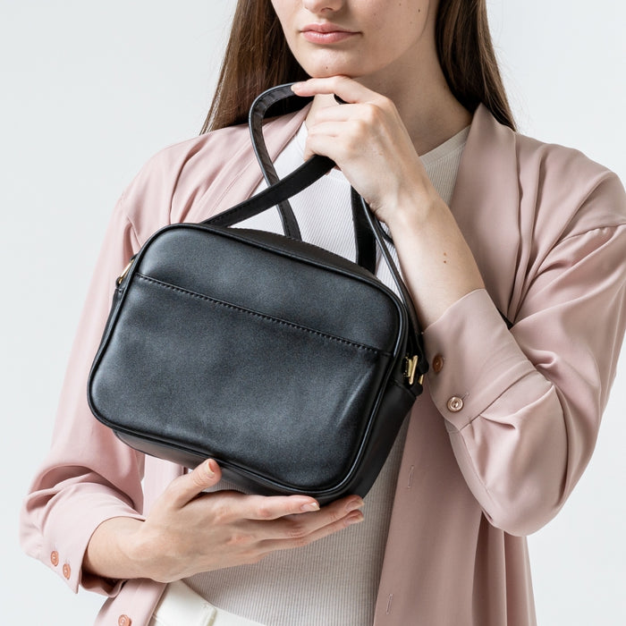 PUレザー 高見え ショルダーベルト付き キューブバッグ