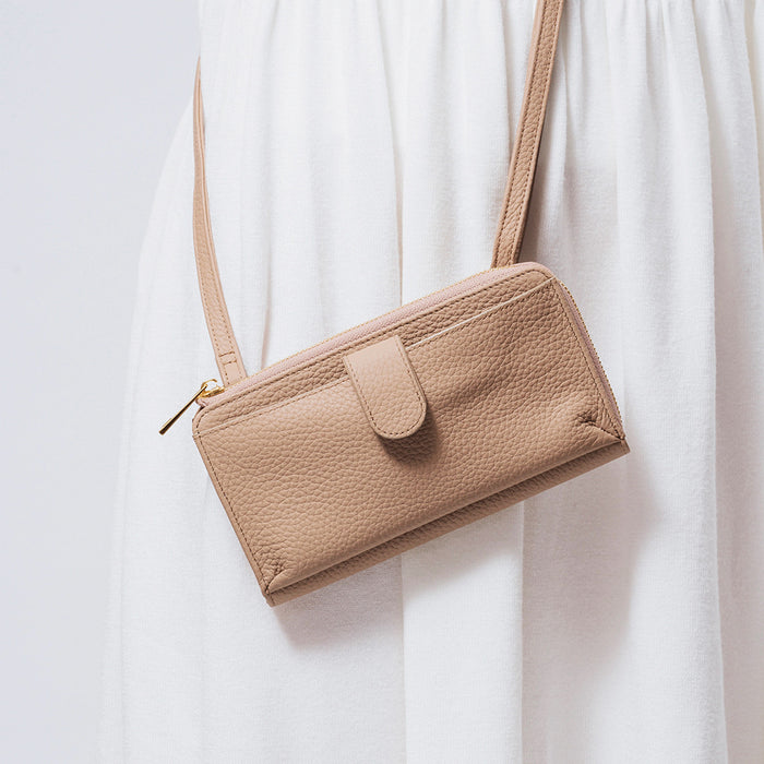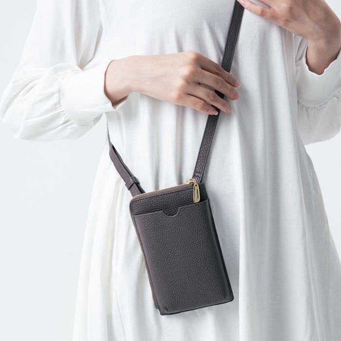 フルグレイン シュリンクレザー L字ファスナー財布付き スマホショルダー
