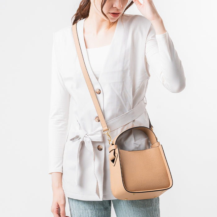 シュリンクレザー ショルダーベルト付き コバ塗バッグ