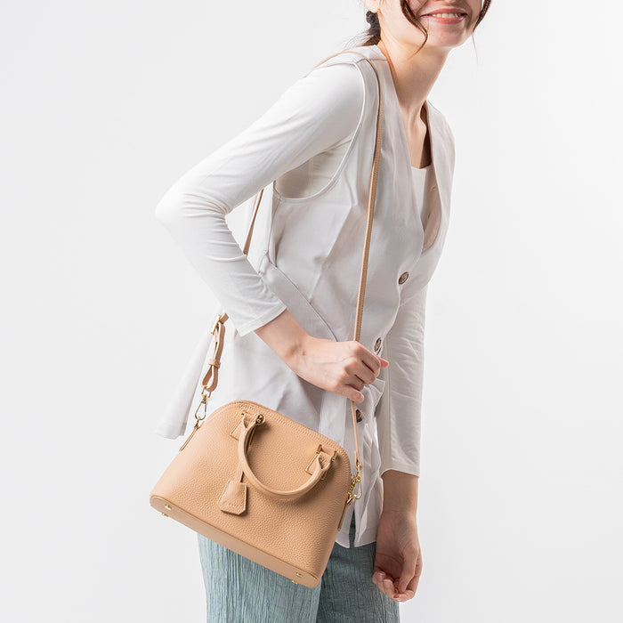 シュリンクレザー ショルダーベルト付き ダブルファスナー ミニハンドバッグ