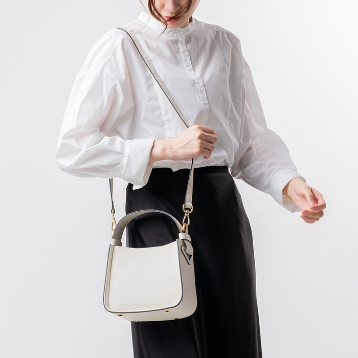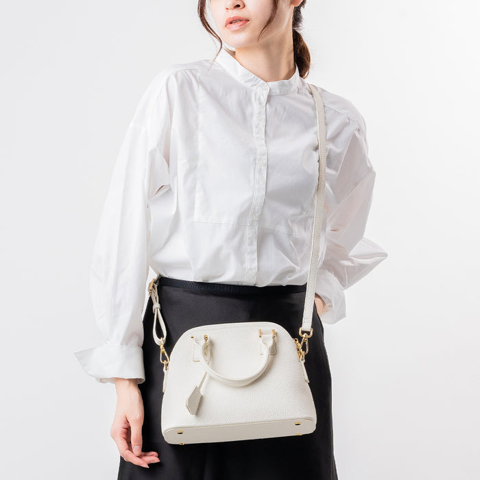シュリンクレザー ショルダーベルト付き ダブルファスナー ミニハンドバッグ