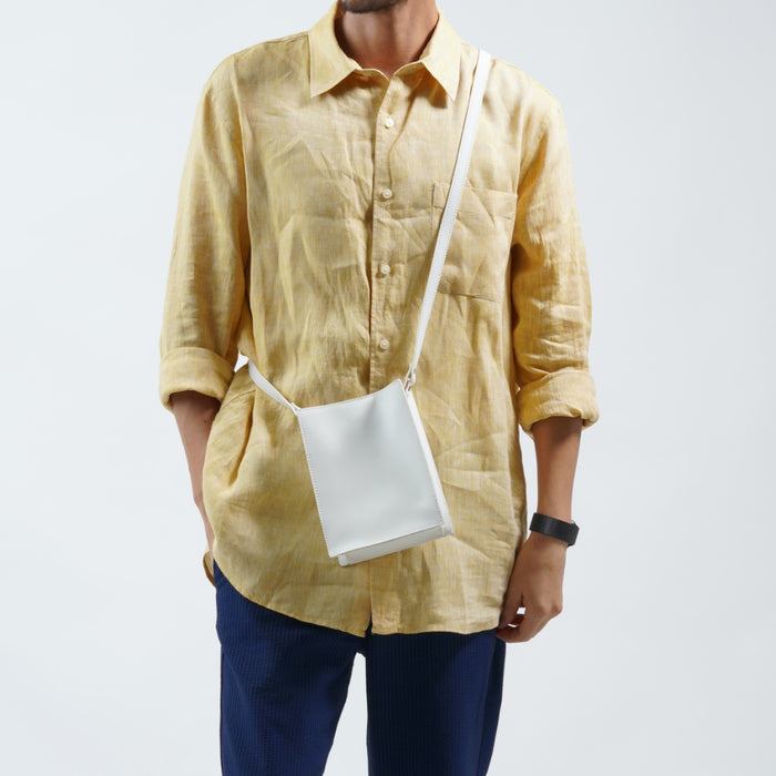 シュリンクレザー ショルダーベルト付き コバ塗バッグ