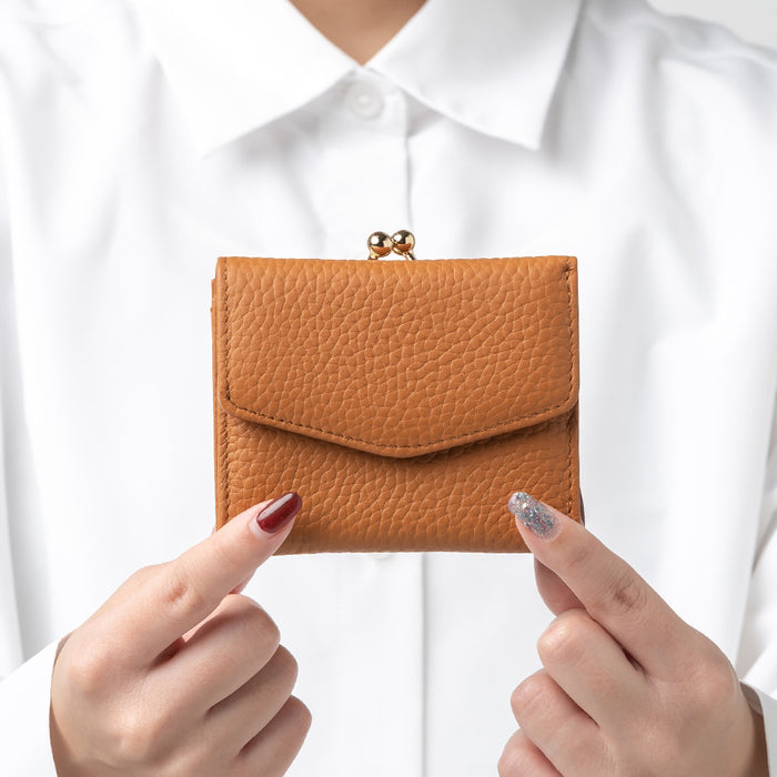 シュリンクレザー がま口 ボックス型コイン収納 ミニ 三つ折り財布