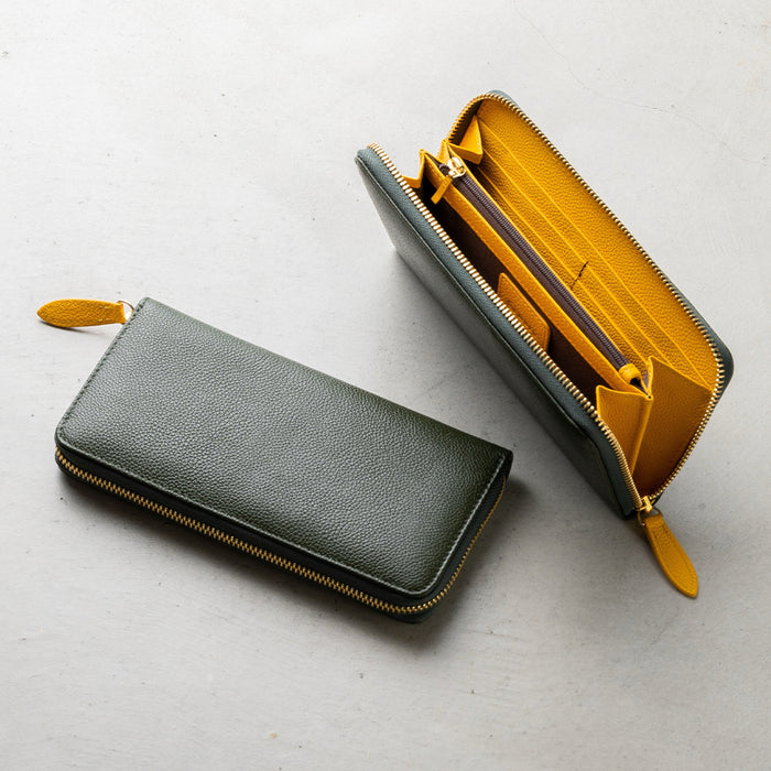 牛革 シュリンクレザー スキミング防止 YKK L字ファスナー長財布