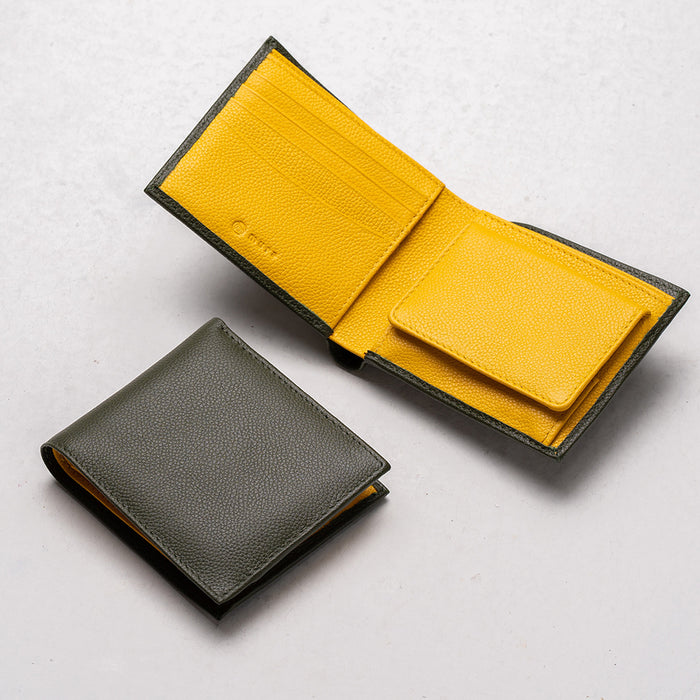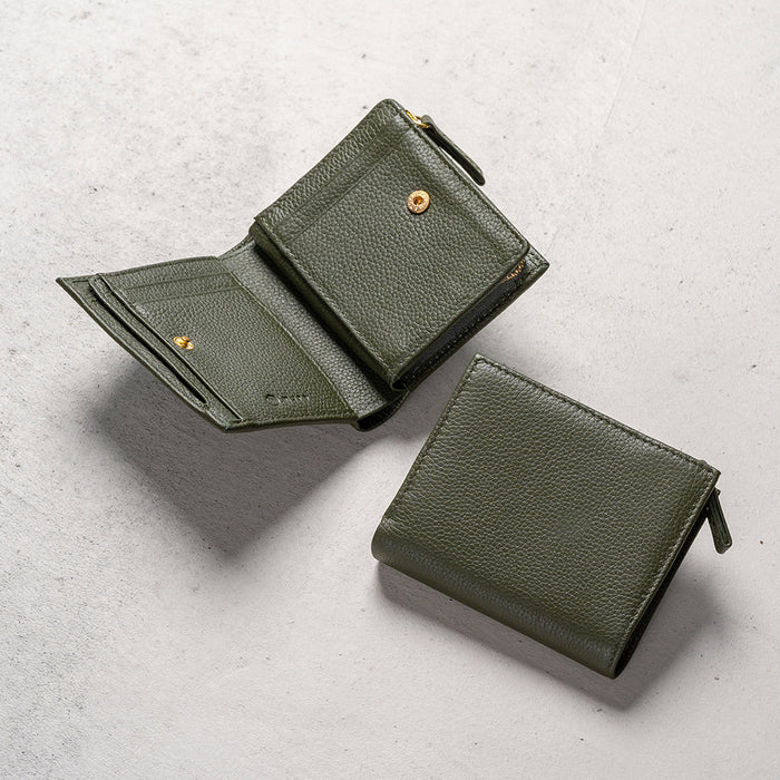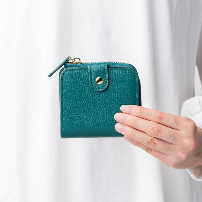 牛革 シュリンクレザー ゴールドファスナー ボタン閉じ 二つ折り財布