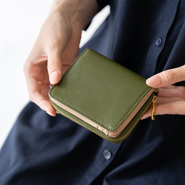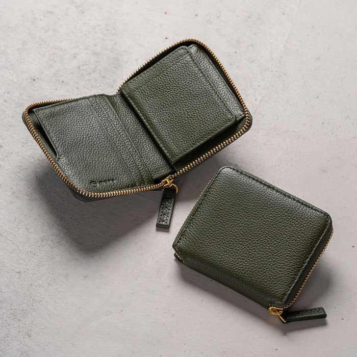牛革 シュリンクレザー YKKラウンドファスナー ボックス型小銭入れ 二つ折り財布
