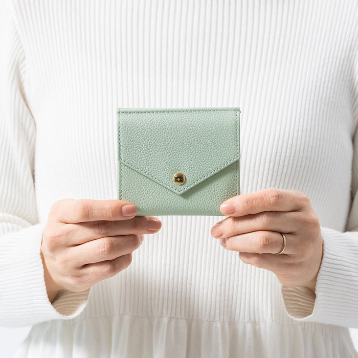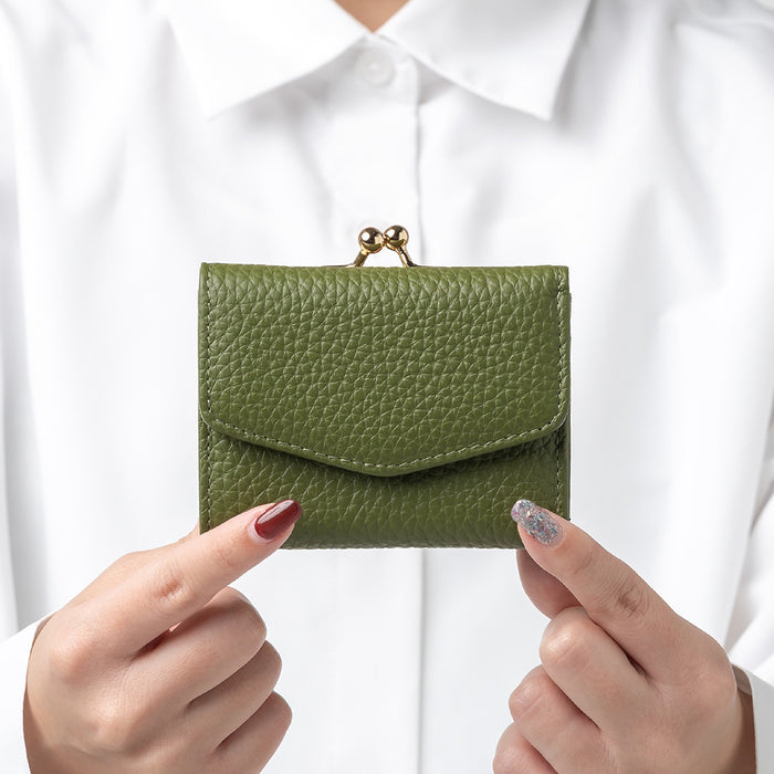 シュリンクレザー がま口 ボックス型コイン収納 ミニ 三つ折り財布