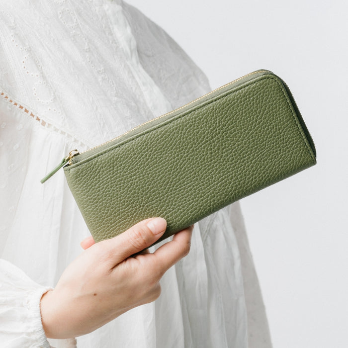イタリアンレザー 薄型 L字ファスナー スリム 長財布