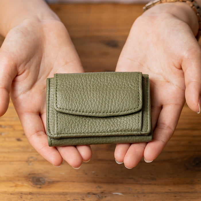 イタリア製シュリンクレザー スキミング防止機能付き ミニ財布 三つ折り財布