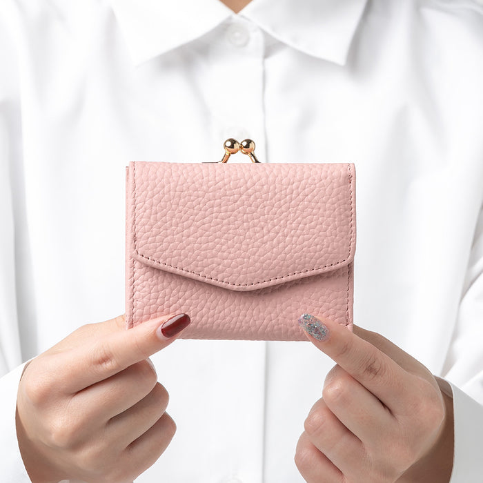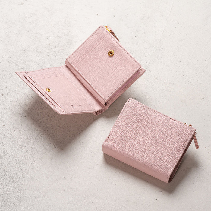 シュリンクレザー がま口 ボックス型コイン収納 ミニ 三つ折り財布