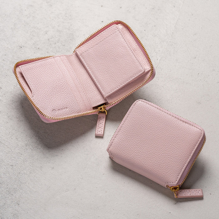牛革 シュリンクレザー YKKラウンドファスナー ボックス型小銭入れ 二つ折り財布