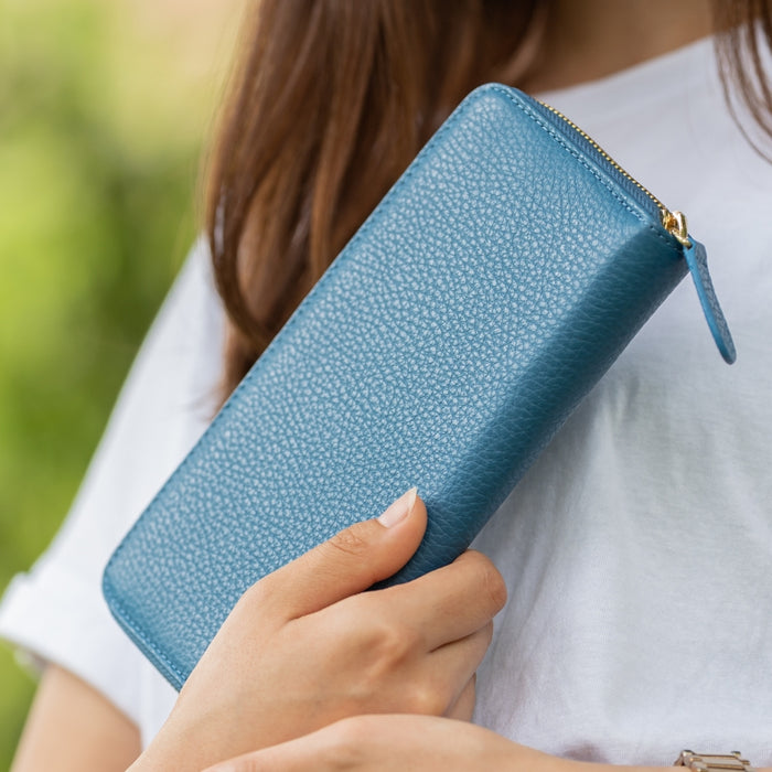 イタリアンレザー シュリンクレザー スキミング防止機能付き ラウンドファスナー 長財布