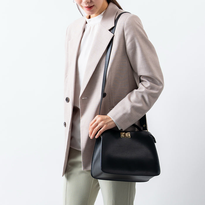 PUレザー 2WAY ショルダーベルト付き ハンドバッグ