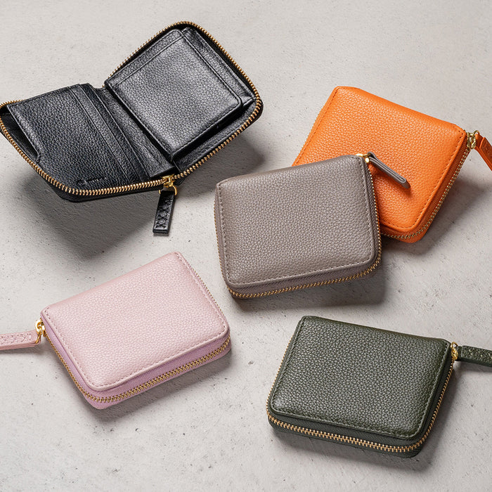 牛革 シュリンクレザー YKKラウンドファスナー ボックス型小銭入れ 二つ折り財布