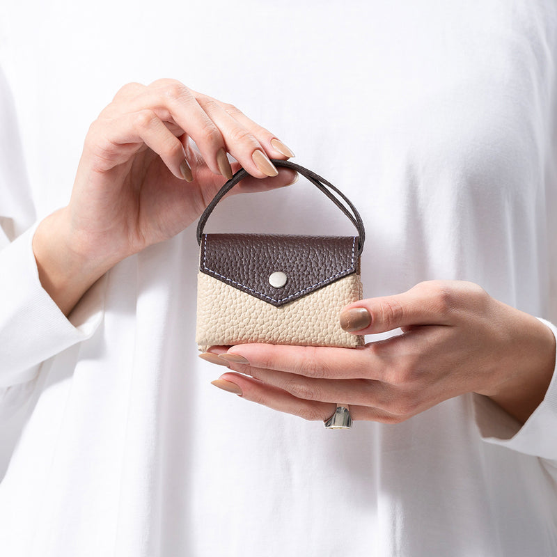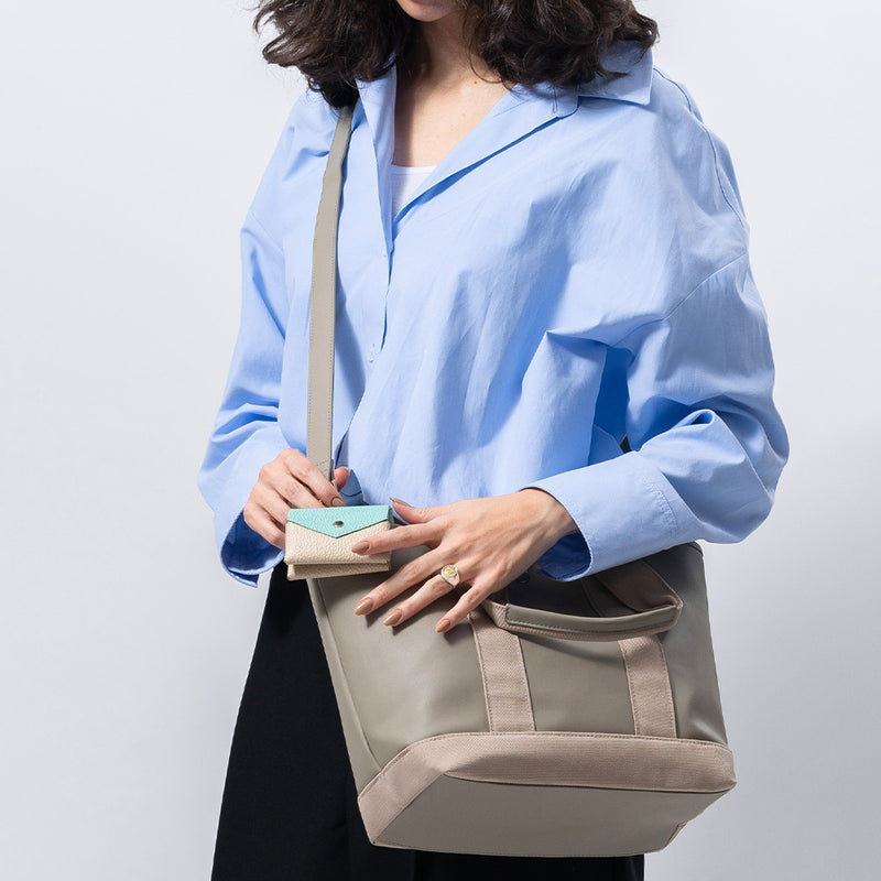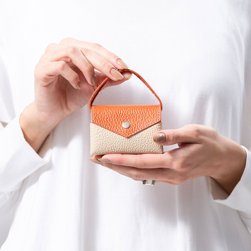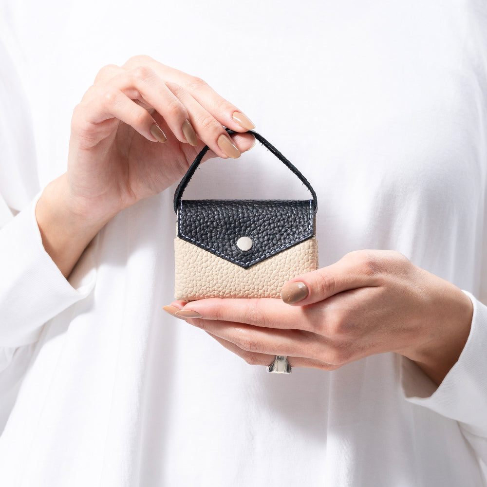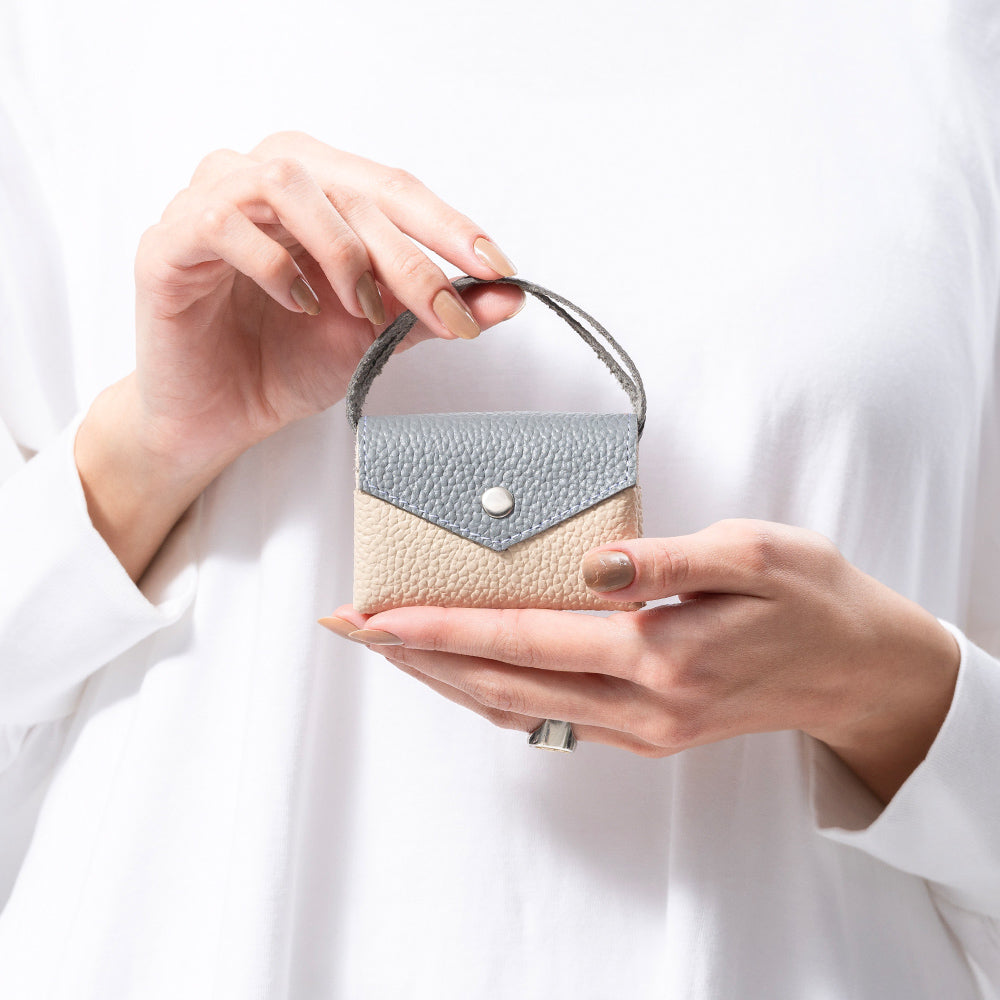 普段のファッションのアクセントになるマイクロバッグのようなフォルム。 持ち手にもスリットを入れるなどディテールにこだわり、可愛さを詰め込んだデザインです。