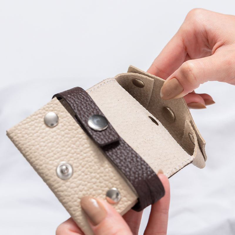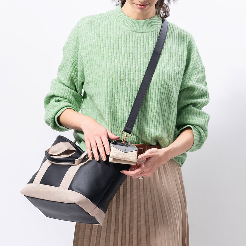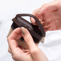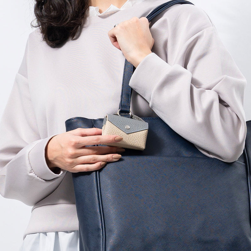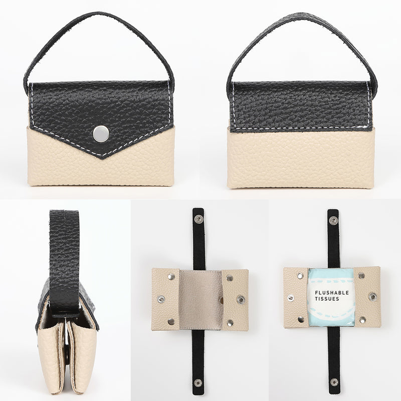 ポケットティッシュケースの取っ手はスナップボタン式のため、お気に入りのバッグに簡単に取り付け可能。その日、使いたいバッグにサッと付け替えてご使用いただけます。