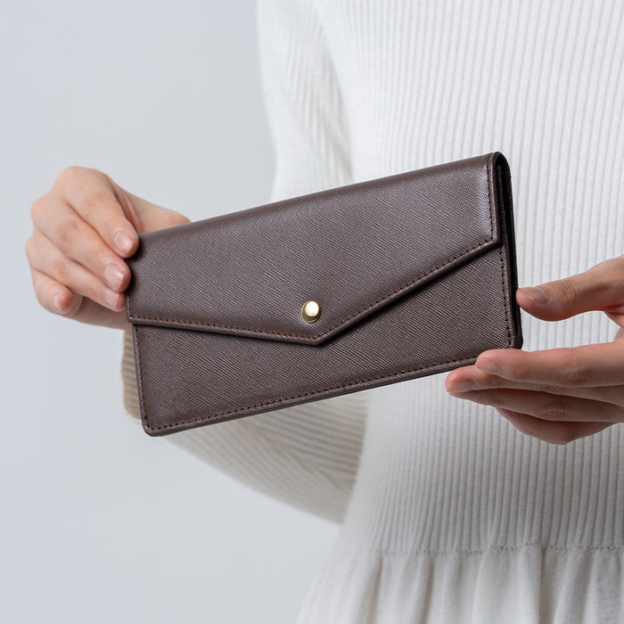 本革 サフィアーノレザー スキミング防止 コンパクト かぶせ蓋付き 薄型 長財布