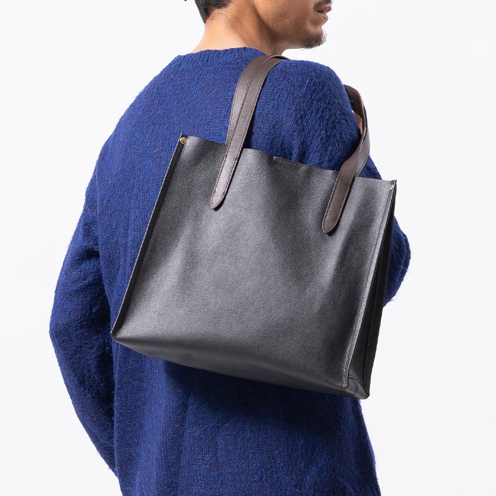 シュリンクレザー シンプル スマホポケット付き本革トートバッグ