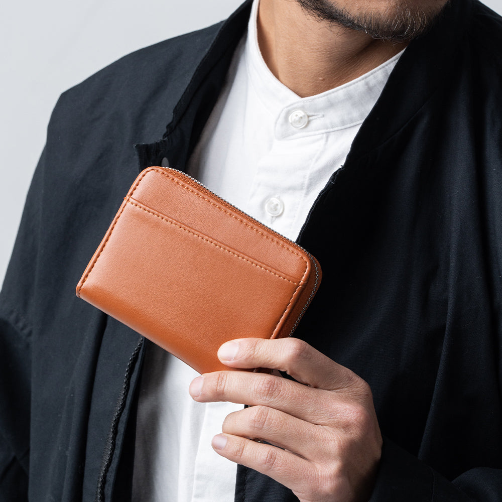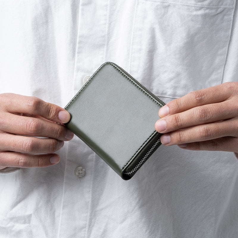 ファスナーをひとつ開けるだけで、小銭、お札、カード、全てが一度で取り出せ、会計もスピーディー。